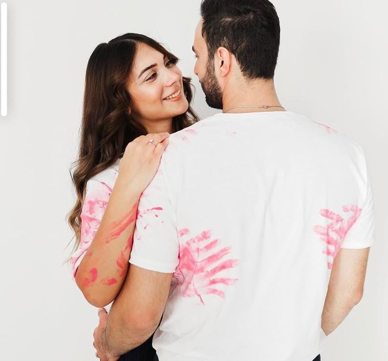 يتم تجهيز 2 تيشرت ابيض للأم والأب بمقاس فري سايز ..